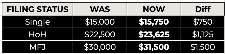 HIGHER STANDARD DEDUCTION MADE PERMANENT & INCREASED SLIGHTLY for 2025